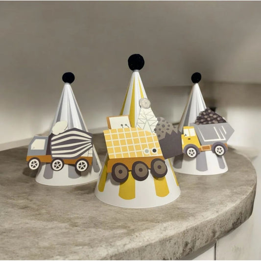 İnşaat Temalı Karton Şapka Retro Renkler 3 Adet