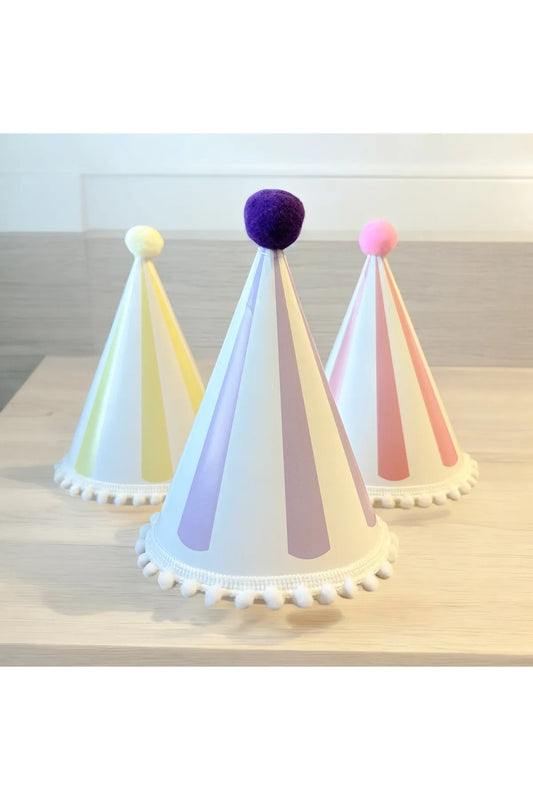 Makaron Renklerde 3 Adet Lila Sarı Pembe Karton Şapka