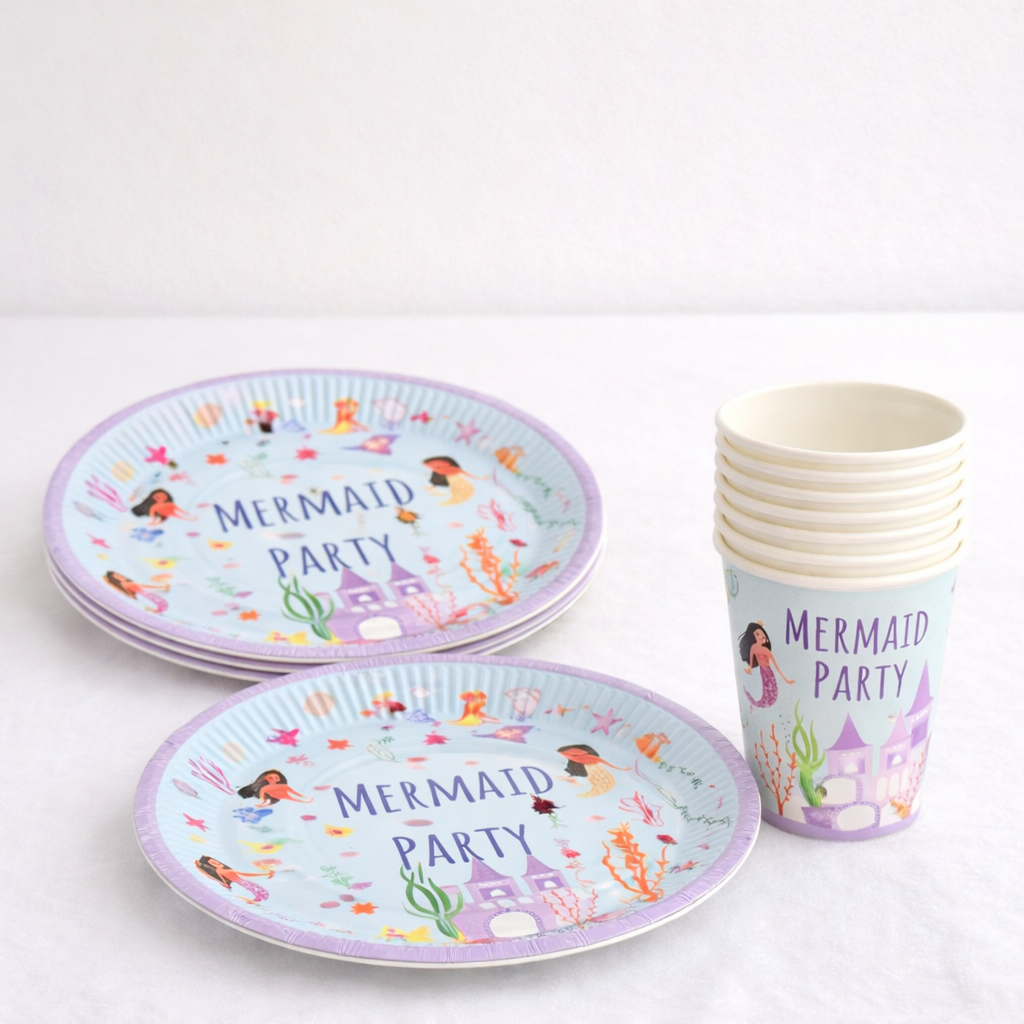 🧜♀️ Denizkızı Temalı 8 Tabak 8 Bardak Parti Seti