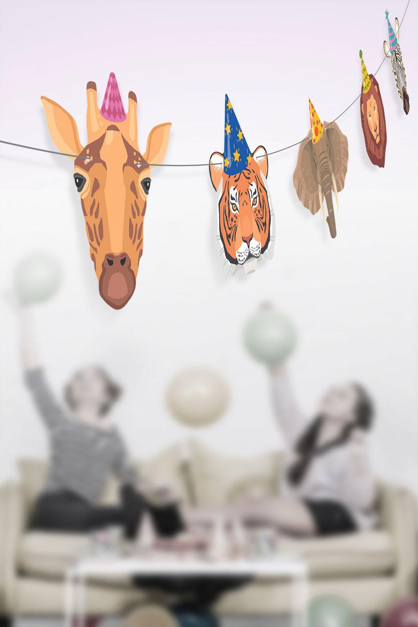 Parti Hayvanları Temalı Banner Süs Safari
