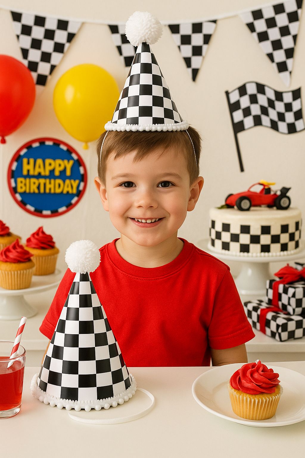 - 🏁 Yarış Temalı Damalı Tasarım – Doğum günü ve özel parti konseptlerine uyumlu.