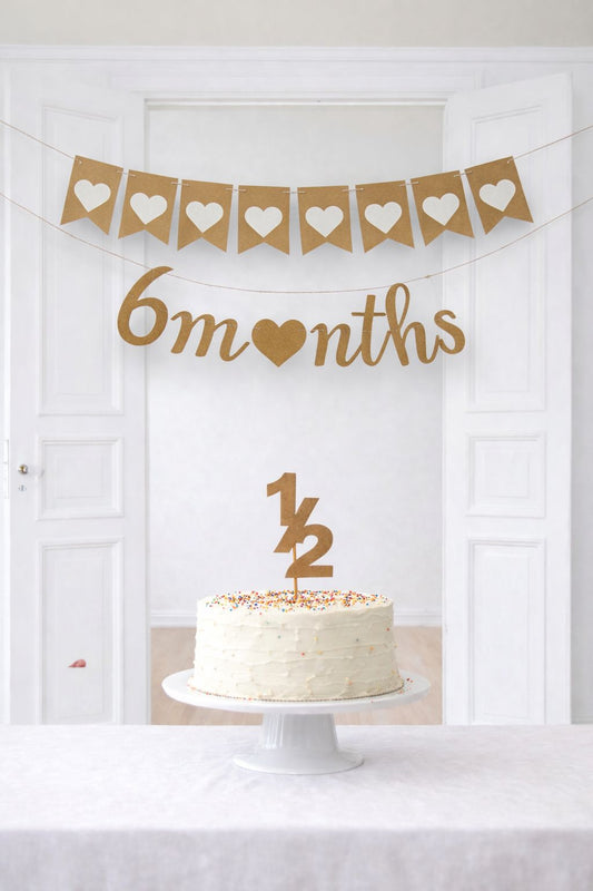 Yarım Yaş 6 months Şeker Pembe Simli Şapka/Pasta Süsü /Duvar yazısı 3 Parça Set